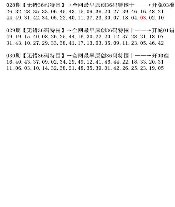 028期 特码六合数 开:兔03错 【01合02合05合06合08合09合】 |